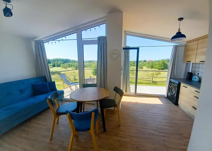 Wenn Sie einen frühen Flug aus Ogonki haben, liegt die 40 m² große Ferienwohnung Miedzy Jeziorami Ogonki 120 km vom Flughafen Olsztyn-Mazury entfernt. Für Gäste, die einen aktiven Aufenthalt suchen, bietet die Apartments Zugang zu einem Golfplatz.